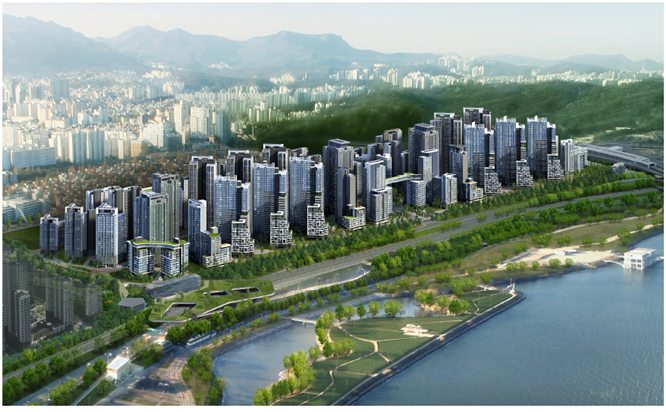 2018년 12월 관리처분인가를 받아 2021년 5월 이주, 24년 3월 말 착공에 들어갑니다. 3천 세대 이상에서 한강 조망권이 나오게 설계한다고 합니다.